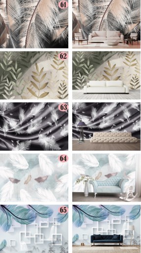 ФОТО ОБОИ ПЕРО ЦВЕТ ПАЛЬМОВЫЕ ЛИСТЬЯ ГРАФИКА