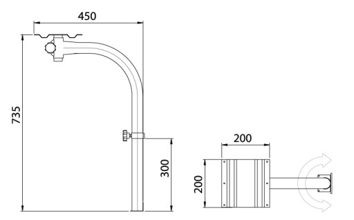 Noga przeznaczona do zastosowania w kamperach oraz przyczepach kempingowych. Noga posiada zakrzywiony kształt oraz obrotową bazę blatu, dzięki czemu umożliwia dowolne obrócenie i ustawienie stołu.