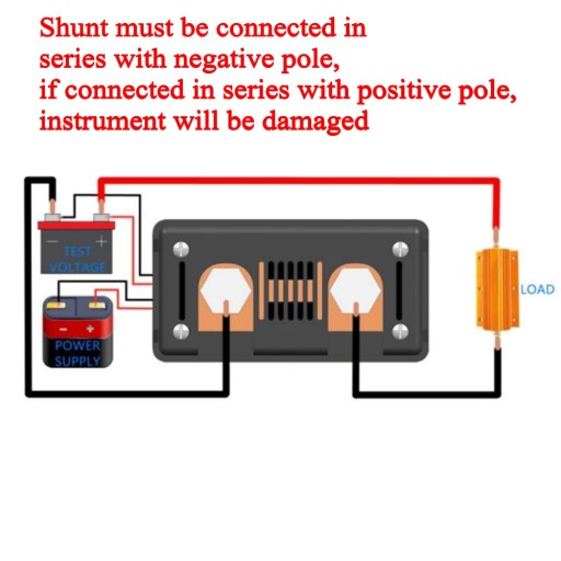 Uwaga! Nie podłączać do bocznika przewodu dodatniego (z plusem). Tylko ujemy biegun. Niewłaściwe podłączenie uszkodzi miernik!