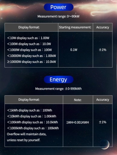4. Energia wskazania energii ma wskazanie kierunku, jeśli jest "-", oznacza to, że energia jest w kierunku odwrotnym, w przeciwnym razie jest to kierunek do przodu. Kierunek energii jest oceniany zgodnie z bieżącym kierunkiem, jeśli prąd jest dodatni, energia wzrośnie, maksymalna to 999kwh, przelew zostanie utrzymany, chyba że go zresetujesz; jeśli prąd jest odwrotny, energia zmniejszy się, maksymalna wynosi-999kwh, przelew zostanie utrzymany, chyba że go zresetujesz