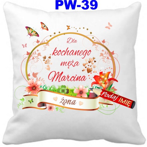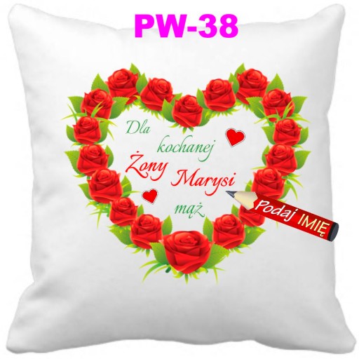 Oferujemy wzruszającą a zarazem praktyczną poduszkę dla żony, która codziennie będzie przypominała jej o uczuciu jakim ją darzysz. Poduszka z Imieniem żony.