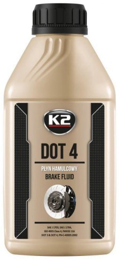 Płyn hamulcowy DOT 4 posiada doskonałe parametry reologiczne pozwalające na stosowanie w bardzo niskich temperaturach. Jest neutralny dla uszczelnień i stopów metali stosowanych w układzie hamulcowym oraz chroni go przed korozją. Płyn hamulcowy K2 DOT 4 posiada temperaturę wrzenia przekraczającą 230 st. C, dzięki czemu dłużej zachowuje on swoje właściwości. Produkt jest w pełni mieszalny z innymi płynami klasy DOT.