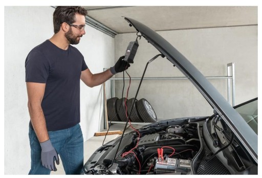 - Zawartość: 1x ładowarka Bosch C10 z hakiem do zawieszania, kablem zasilającym, kablem do ładowania z zaciskami, instrukcją obsługi i torbą transportową
