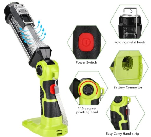 - Halogen nie jest marki RYOBI- Halogen LED pasuje do baterii RYOBI 18V i zamienników tych baterii.