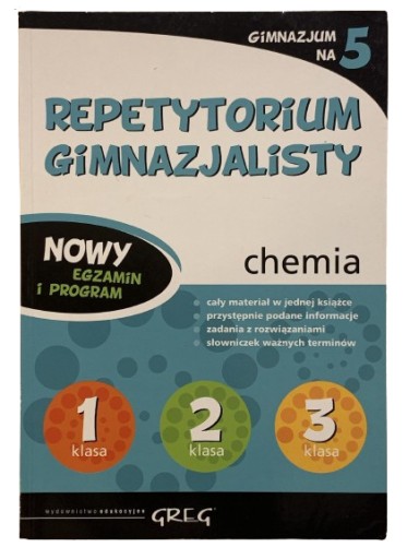 CHEMIA REPETYTORIUM GIMNAZJALNE ściąga bryk - pozycja idealna do powtarzania wiadomości W KLASACH - 7,8 - ksiązka używana , stan bardzo dobry minus.