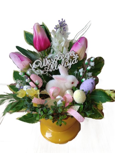 Zamawiasz ogólnie kolorystykę kompozycji, która może lekko się różnić od przedstawionych zdjęć (w razie jakiś braków kwiatków zastępujemy bardzo podobnymi).