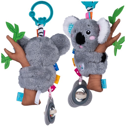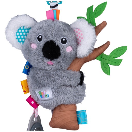 Ile jest powodów, żeby polubić Ośmiornicę Stellę? Co najmniej tyle ile posiada ona kolorowych macek! Pluszak wykonany jest ze zróżnicowanych materiałów, odnóża zdobią kolorowe, materiałowe metki, różniące się fakturą, a do nich przymocowane są gryzaki, piszczałka oraz bezpieczne lusterko do samopoznania dziecka. Przy potrząsaniu, Ośmiornica wesoło grzechocze, rozweselając maluchy! Praktyczna zawieszka, znajdująca się przy jej głowie pozwala na przyczepienie zabawki w dowolnym miejscu. BALIBAZOO KOALA DYZIO ZAWIESZKA GRZECHOTKA