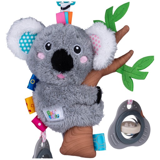 Ile jest powodów, żeby polubić Ośmiornicę Stellę? Co najmniej tyle ile posiada ona kolorowych macek! Pluszak wykonany jest ze zróżnicowanych materiałów, odnóża zdobią kolorowe, materiałowe metki, różniące się fakturą, a do nich przymocowane są gryzaki, piszczałka oraz bezpieczne lusterko do samopoznania dziecka. Przy potrząsaniu, Ośmiornica wesoło grzechocze, rozweselając maluchy! Praktyczna zawieszka, znajdująca się przy jej głowie pozwala na przyczepienie zabawki w dowolnym miejscu. BALIBAZOO KOALA DYZIO ZAWIESZKA GRZECHOTKA