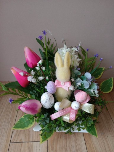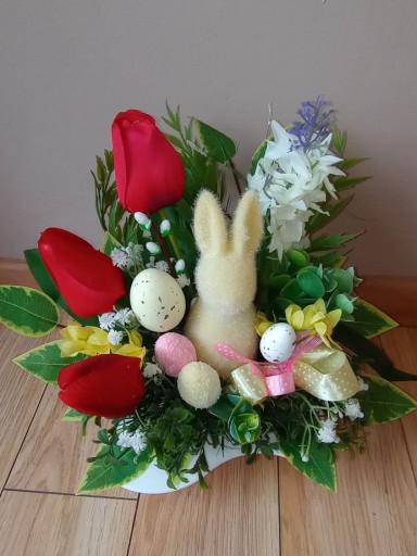 Zamawiasz ogólnie kolorystykę kompozycji, która może lekko się różnić od przedstawionych zdjęć (w razie jakiś braków kwiatków zastępujemy bardzo podobnymi).