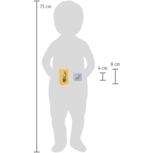 Wymiary klocków są różne: od kostki - 4 x 4 x 4 cm do klocka z koralikami - 8 x 4 x 4 cm.