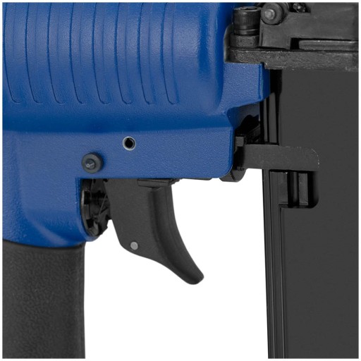 Gwoździarka pneumatyczna marki MSW sprawdzi się w pracach dekarskich, elewacyjnych, przy projektowaniu wnętrz, w produkcji czy tapicerowaniu mebli. Urządzenie posiada regulację głębokości wbijania. W magazynku umieszcza się gwoździe o długościach 15/25/32/40/50 mm. Maksymalne ciśnienie robocze wynosi 120 psi (8,27 bar) przy zalecanym zakresie ciśnienia 60-100 psi (4,14-6,89 bar). Zużycie powietrza wynosi 68 l/min. Standardowe przyłącze 1/4''PT pozwala na szybkie podłączenie urządzenia do sprężarki za pośrednictwem węża pneumatycznego. Regulowany wylot pozwala pracować czysto i wydajnie. Miękki uchwyt i zintegrowana amortyzacja zapewniają ergonomiczne użytkowanie. Gwoździarka posiada magazynek na 110 gwoździ co pozwala na płynną pracę przez długi czas. Szybkie wypinanie zapewnia łatwe uzupełnianie magazynku i usunięcie blokady.