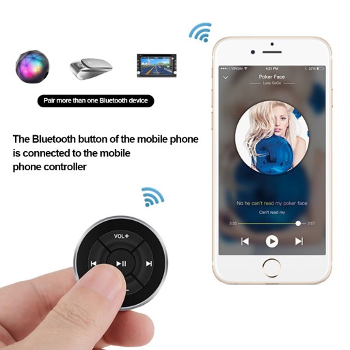 Bezprzewodowa Bluetooth kompatybilny 5.0 Media pilot zdalnego sterowania na kierownicy MP3 odtwarzacz muzyczny dla Android IOS sterowanie smartfonem Cechy: Dotknij przycisku kompatybilnego z Bluetooth palcem, aby sterować odtwarzaniem multimediów bez dotykania telefonu.Może kontrolować odtwarzanie multimediów, wstrzymywać i śledzić do przodu i do tyłu, a także regulować głośność dzwonków telefonu komórkowego i głośności odtwarzania multimediów. Nawet jeśli umieścisz telefon w kieszeni lub portfelu, możesz go obsługiwać w skutecznej odległości 12 metrów.Dobra kompatybilność:W przypadku urządzeń z systemem iOS obsługa urządzeń zgodnych z Bluetooth 3.0 lub nowszychUrządzenie z androidem obsługuje technologię Bluetooth 4.0 lub nowsząKompaktowa konstrukcja o średnicy 35mm. Specyfikacja: Odległość Bluetooth: 12M/40 stópMateriał: ABS + stop aluminiumBateria: 1 x bateria przycisku CR2016Rozmiar: 35mm/1.38 cal średnicyKolor: czarny Pakiet zawiera: 1 X pilot zdalnego sterowania zgodny z Bluetooth2 X zacisk montażowy1 X brelokNaklejka 1X3M