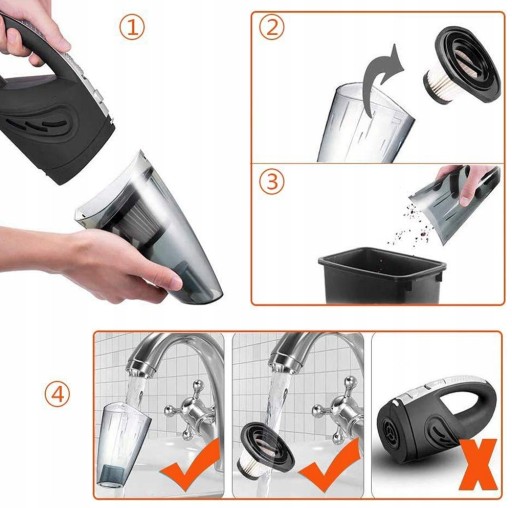 - Przenośny odkurzacz ręczny z 5 funkcjonalnymi akcesoriami,
