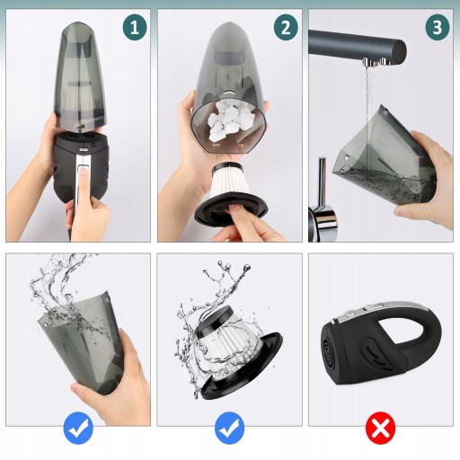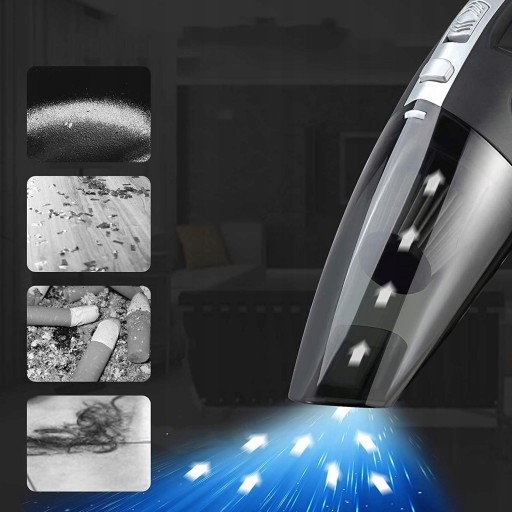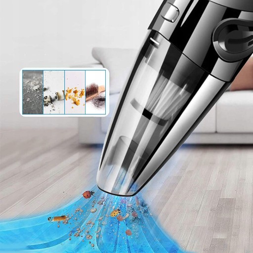 - Nowy, mocny silnik zapewnia siłę ssania 6000 Pa, a akumulatorowy odkurzacz samochodowy bez problemu usuwa kurz, okruchy, kocią sierść, sierść zwierząt oraz rozlane mleko i płyny.