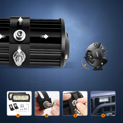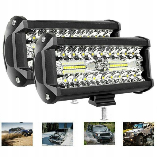 - Ta mocna listwa świetlna LED o mocy 120 W jest wyposażona w wysokiej jakości chipy LED chronione wytrzymałą, odporną na uderzenia soczewką z poliwęglanu.