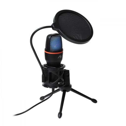 - Mikrofon wyposażony w niewielkich gabarytów trójnóg pozwala na wygodne ustawienie mikrofonu na biurku. Dodatkowa regulacja pozwala na dostosowanie optymalnego kąta ustawienia mikrofonu.