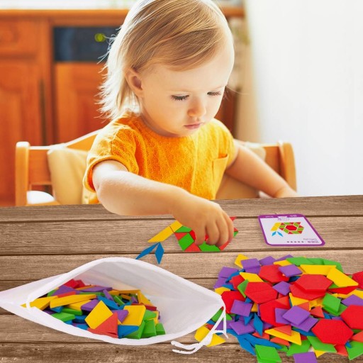 Zestaw drewnianych puzzli o różnych kształtach i żywych kolorach to niekończące się możliwości zabawy! Solidnie wykonany zestaw zapewni Twojemu dziecku godziny rozrywki. Pozwól swojemu dziecku uczyć się poprzez zabawę!