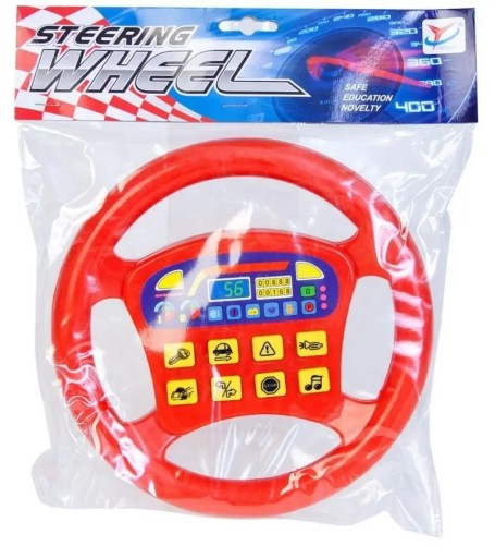 Zalety produktu: kierownica wydaje odgłosy: klakson, odpalanie silnika, sygnał alarmowy, melodie, występuje w dwóch wersjach kolorystycznych żółta oraz niebieska. Edukacyjna kierownica dla maluszka od MEGA CREATIVE. Zabawka zapewni dużą frajdę twojemu dziecku a dzięki niewielkim rozmiarom twoja pociecha będzie ją mogła zabrać ze sobą na spacer, do przedszkola, do znajomych na wspólne zabawy z rówieśnikami. Zawartość zestawu: kierownica funkcyjna. Zabawka wykonana z plastiku. Wymiary/waga/baterie: wymiary produktu dł. x wys. x gł. cm : 19x19x4, wymiary produktu w opakowaniu dł. x wys. gł. cm : 22x23x3, waga produktu bez opakowania kg : 0,10 kg, waga produktu w opakowaniu kg : 0,11 kg, wymaga zasilania bateriami 2 x AALR06- nie załączono do zestawu. Zabawka przeznaczona dla dzieci w wieku: 18 m . Pakowana w folijkę z zawieszką.