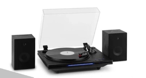 - Kompletny system do płyt winylowych: gramofon z dwoma kolumnami stereo