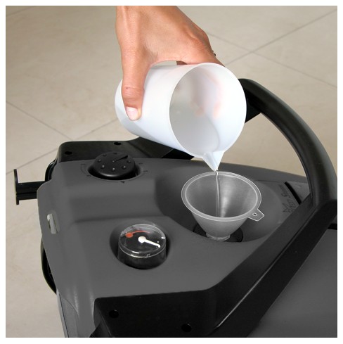 Nie trzeba czekać na ostygnięcie kotła , można go bezpiecznie napełnić, nawet gdy go używasz. Ustaw kocioł, wybierz intensywność pary. Wszystkie elementy sterujące znajdują się na uchwycie, naciśnij dźwignię, aby wytworzyć parę, naciśnij przycisk, aby odkurzyć.