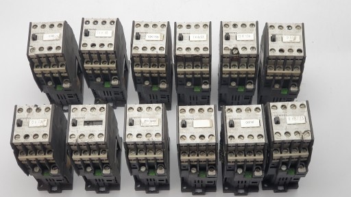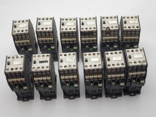 - Dodatkowe informacje: #B WADA - styczniki mają wyrwane zaczepy od montażu na szynę DIN TH35 co uniemożliwia stabilny montaż na szynie, ogólny stan styczników dostateczny, liczne pęknięcia i wyłupania w obudowach, przybrudzone!