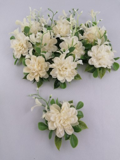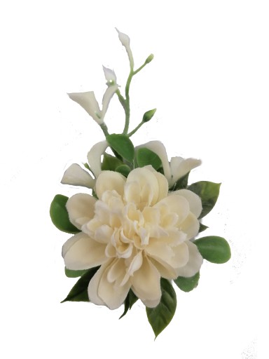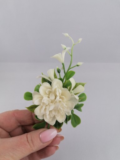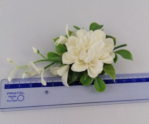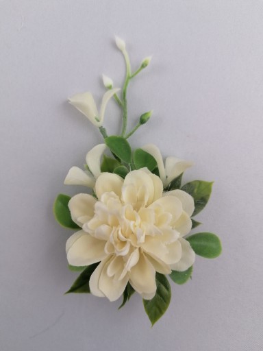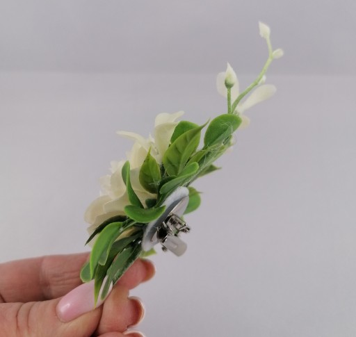 Kotylion mocowany jest na metalowej zapince posiadającej klips i agrafkę.