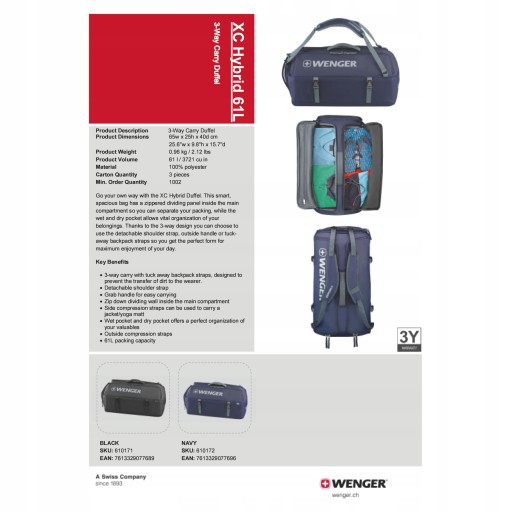 Wenger XC Hybrid 3-Way Carry Duffel Bag Navy 61L