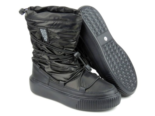 Nieszablonowe śniegowce damskie od BIG STAR to kwintesencja miejskiego szyku w sportowym wydaniu. Wysokie, ocieplane cholewki wykonane z nylonu i skóry syntetycznej w kolorze czarnym, doskonale chronią przed mrozem i śniegiem, a sportowa podeszwa gwarantuje wygodę w każdym terenie. Model wyróżniają także niecodzienne wiązania w formie elastycznej gumki ze stoperem.
