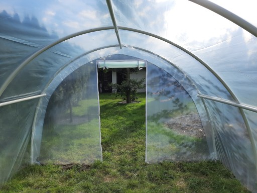 W standardzie z przodu wszyte w folię drzwi o rozmiarze 170 x 70cm, a z tyłu duże okno o rozmiarze 80 x 80cm, rolowane i zamykane na zamki błyskawiczne - daje możliwość swobodnego wietrzenia.