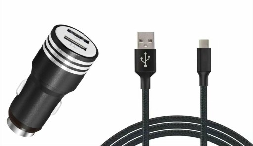 Ładowarka samochodowa + kabel USB-C.