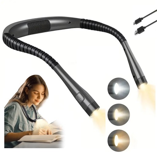 ⭐REGULOWANA ELASTYCZNA LAMPKA LED DO CZYTANIA NA SZYJĘ WBUDOWANY AKUMULATOR , USB-C , ZMIANA BARW ORAZ MOCY ŚWIATŁA