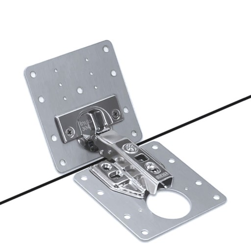 Dzięki optymalnemu rozstawieniu otworów, płytka pasuje do najpowszechniej używanych typów zawiasów dostępnych na rynku.