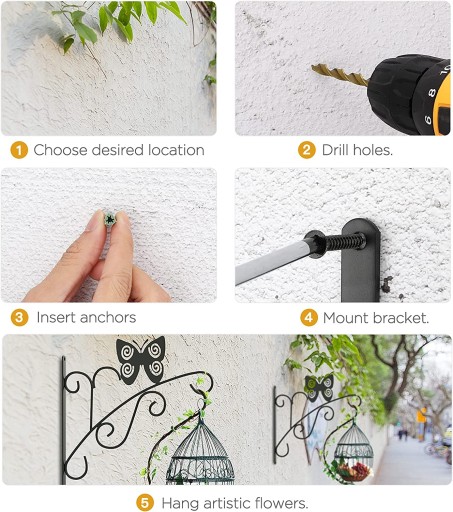 - Stabilny i bezpieczny: proces spawania o wysokiej wytrzymałości i konstrukcja trzypunktowej konstrukcji zapewniają najwyższy poziom wsparcia. Wytrzymuje ciężar do 3 tys. Idealny do wieszania różnych kwiatów, koszy roślinnych, dzwonków wietrznych, latarni, klatek dla ptaków, znaków, znaków na drzwiach, lamp ulicznych i innych przedmiotów dekoracyjnych.
