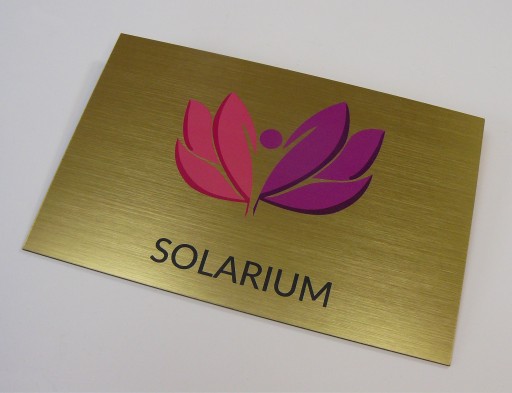 Tabliczka wykonana jest metodą druku UV na precyzyjnie wyciętym laserowo laminacie grawerskim.