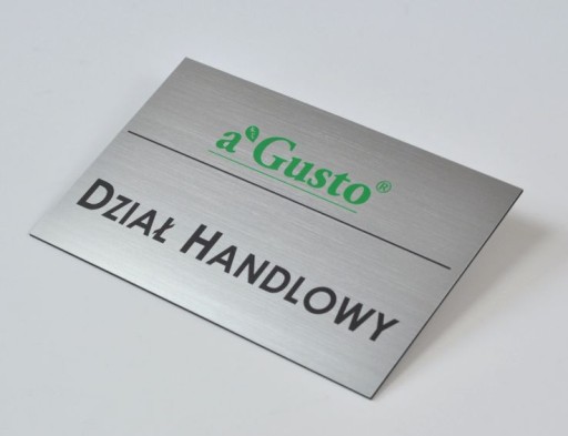 Na tabliczkach drukujemy dowolny napis, logo, grafikę itp. Po dokonaniu zakupu prosimy o przesłanie informacji, jakie mają być umieszczone na tabliczce. Logo i inne znaki graficzne prosimy przesyłać w formie wektorowej (CDR, PDF, AI, ewentualnie dobrej jakości JPG).