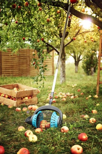 Zbieracz do owoców (kolektor) firmy Gardena z trzonkiem 130cm. Oferowany produkt pozwala na zbieranie owoców bez schylania oraz większego wysiłku. Elastyczne struny koszyka pozwalają na zbieranie różnych owoców np. orzechów, jabłek w różnych rozmiarach, od 4-9 cm średnicy. Otwór boczny zbieracza umożliwia nam zbieranie owoców są trudno dostępne, na przykład, w pobliżu pnia drzewa.