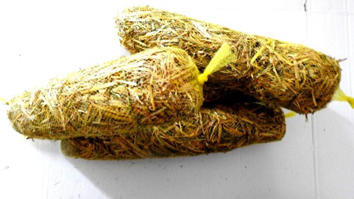 Słoma 200g 1szt zapakowana w Żółtej siatce(wałek wymiar 50 x 10 cm) nierozpuszczalnej w wodzie +gratis kamień (otoczak granitowy ) do obciążenia