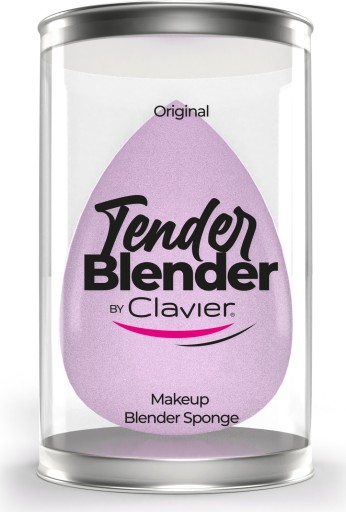 Tender Blender marki Clavier. Gąbka do makijażu w odcieniu jasnego, zabielanego fioletu. Wykonana została z bardzo miękkiego, specjalnego materiału, który sprawia, iż blender nie "zjada" kosmetyków, a jednocześnie pięknie wtapia je w strukturę skóry, tworząc bardzo naturalne wykończenie. Idealnie sprawdzi się do aplikacji podkładu, bazy, pudru, różu i wielu innych produktów do makijażu. Posiada klasyczny kształt jajeczka, który umożliwia dokładną aplikację w ciężko dostępne miejsca. dzięki czemu umożliwia dotarcie w miejsca. Gąbeczka została umieszczona w plastikowym pojemniczku, który może posłużyć do przechowywania i transportu blendera.