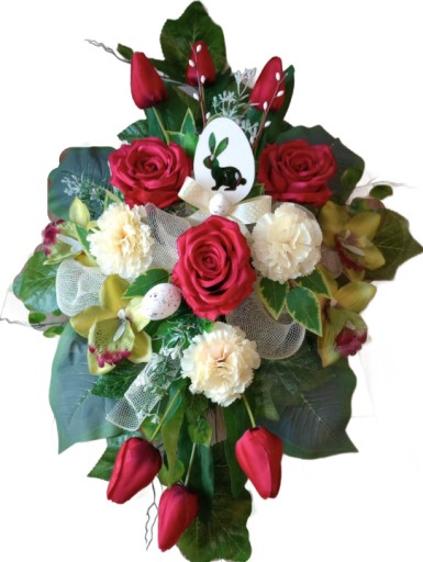 Zamawiasz ogólnie kolorystykę kompozycji, która może lekko się różnić od przedstawionych zdjęć (w razie jakiś braków kwiatków).