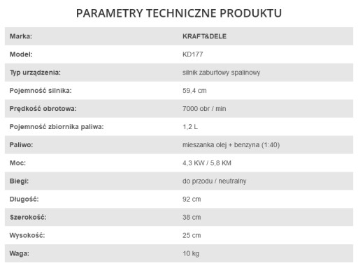 - Paliwo - mieszanka oleju + benzyna (1:40)