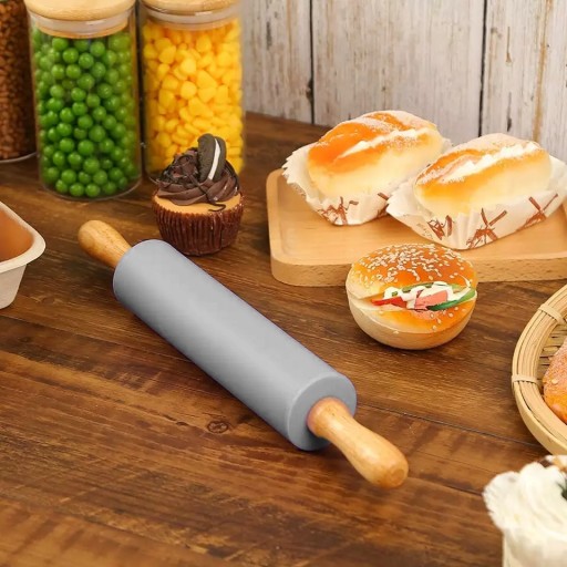 Wykonany z nieprzywierającego silikonu i drewna. Dzięki niemu wygodnie i szybko rozwałkujesz ciasto lub masę cukrową. Wałek jest obrotowy, kręci się wokół własnej osi.