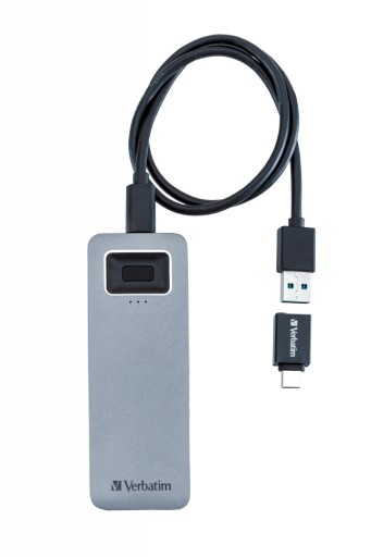 - Zewnętrzny dysk SSD USB-CTM z wbudowanym czytnikiem linii papilarnych