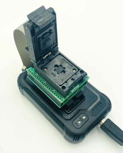 Zastosowana wysokiej jakości podstawka ZIF z pinami typu pogo pin umożliwia programowanie układów zarówno z kulkami jak i bez.