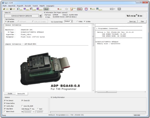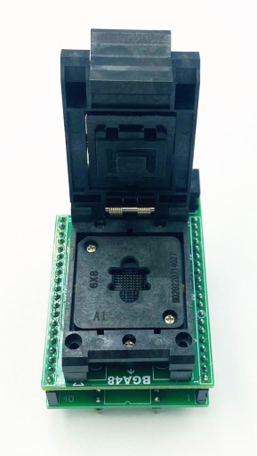 - Wyprowadzenia: BGA48 -->PDIP40+16 - dedykowane wyłącznie dla programatora T48 (nie pasuje do TL866x, T56 ani żadnego innego programatora)