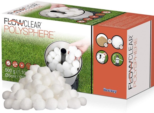 Kulki Filtracyjne 58475 to świetny zamiennik dla używanego dotychczas piasku. Kulki mają większą trwałość i dają szybsze efekty działania. Są bardzo lekkie. Są stworzone w 100% z tworzywa PET. Do wielokrotnego użytku wystarczy wyprać je w pralce i mogą być ponownie używane. Po wypraniu nie tracą swoich właściwości. Dzięki temu, że wywołują mniejsze ciśnienie pozwalają na szybszy przepływ wody.
