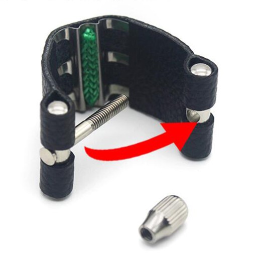 Zapięcie do ligatur ze sztucznej skóry do ustnika z gumy sopranowej.