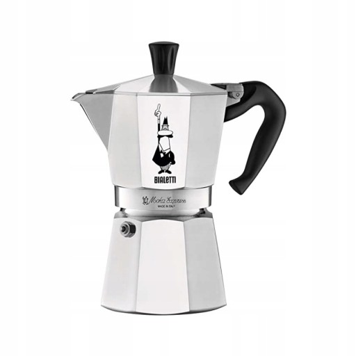 Kawiarka Moka Express o pojemności 200 ml stworzona w całości z polerowanego aluminium. Czarna rączka i uchwyt pokrywy zostały wykonane z silnego i wytrzymałego nylonu. Kawiarka Moka Express wyraża tradycję oraz rewolucję w przygotowywaniu kawy w domu sprawiając, że przygotowywanie kawy staje się rytuałem.