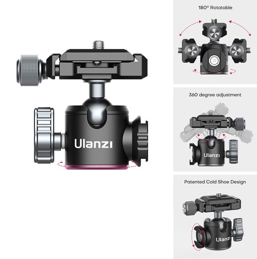 Głowica kulowa 3D - umożliwia płynne obracanie zamocowanego urządzenia wokół własnej osi oraz w dwóch płaszczyznach - pionie i poziomie 180 stopni. Do blokady głowicy służy specjalne pokrętło. Głowica jest demontowalna, można ją odkręcić od statywu i zastosować w każdym innym uchwycie, statywie gdzie zastosowano standardowy gwint mocujący 1/4''