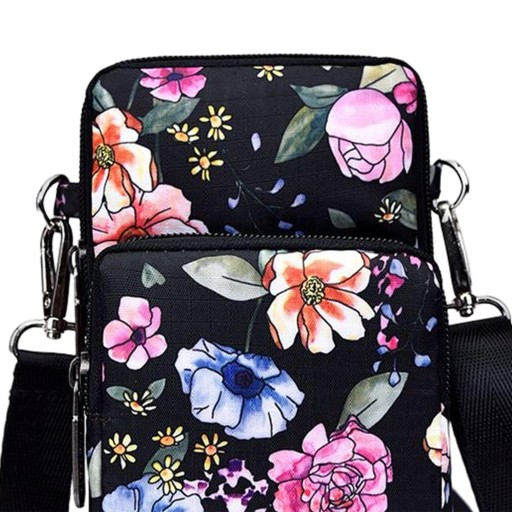 Mała torba na telefon komórkowy Lekki regulowany pasek Kobiety Panie Podróże Czarny kwiat