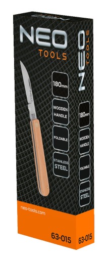 Nóż monterski, drewniane okładki 63-015 marki NEO to praktyczny nóż o całkowitej długości 180 mm.